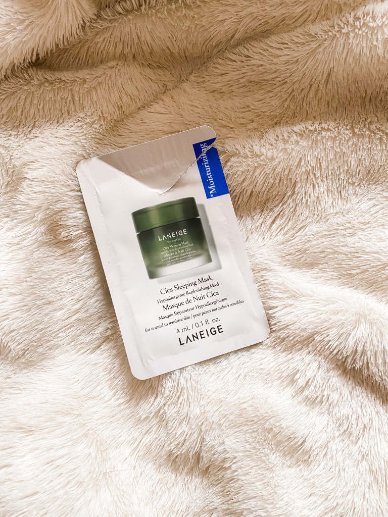 Next, is this sample of this LaNeige Cica Sleeping Mask. This made me break out and I didn’t like the smell, so it’s a no for me dog.