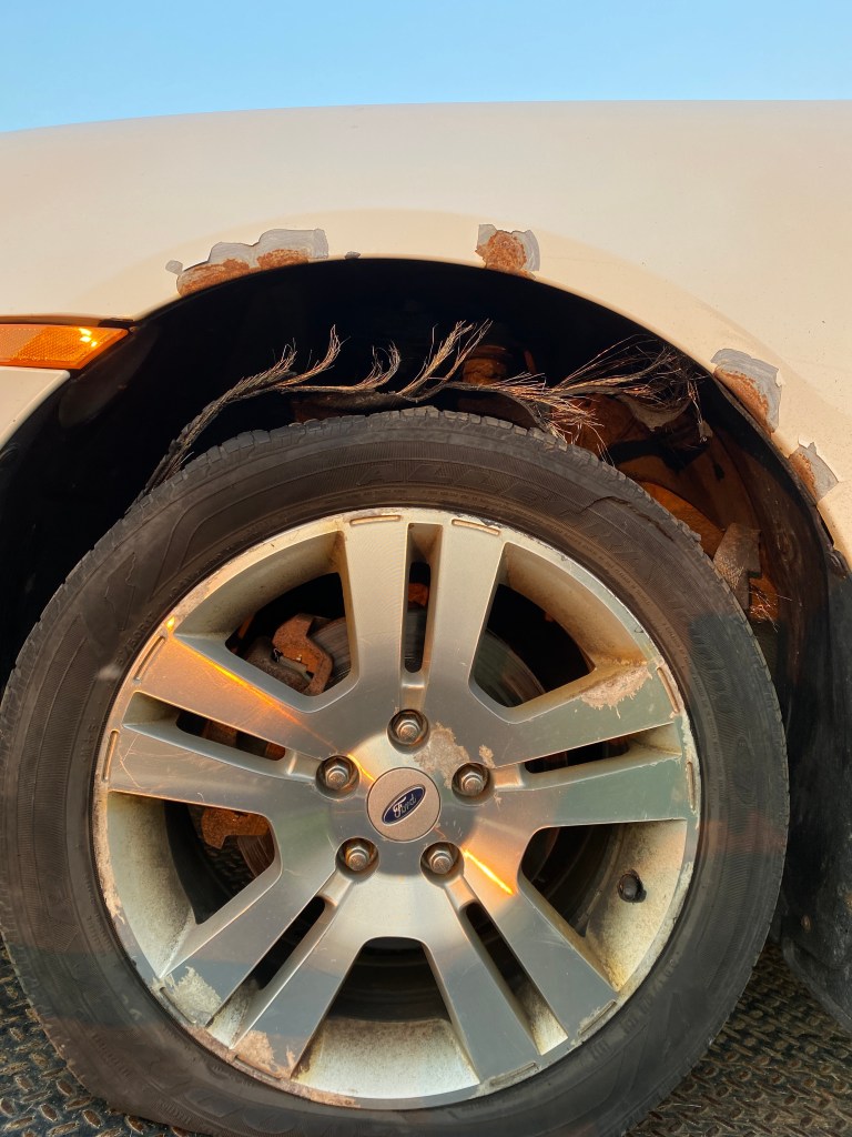 Anyways, on the way back from my weekend in Thunder Bay I could tell that there was something really wrong with my car. The unfortunate part was, I was in Thunder Bay, about 4.5 hours at highway speed away from home. And the noises that started when I got over 60km/hr made me definitely not want to go anywhere near highway speed (90-100km/hr is typically the highway speed limit in Ontario). I had noticed that something was off the night before but it wasn’t obvious enough that I could tell if it actually was different but when I got in the next morning I don’t think I got more than 10 minutes down the road before I pulled over and did what every self-respecting 20-something does when their car isn’t acting normal, called my dad. He had me take some pictures. So let’s have a quick lesson.