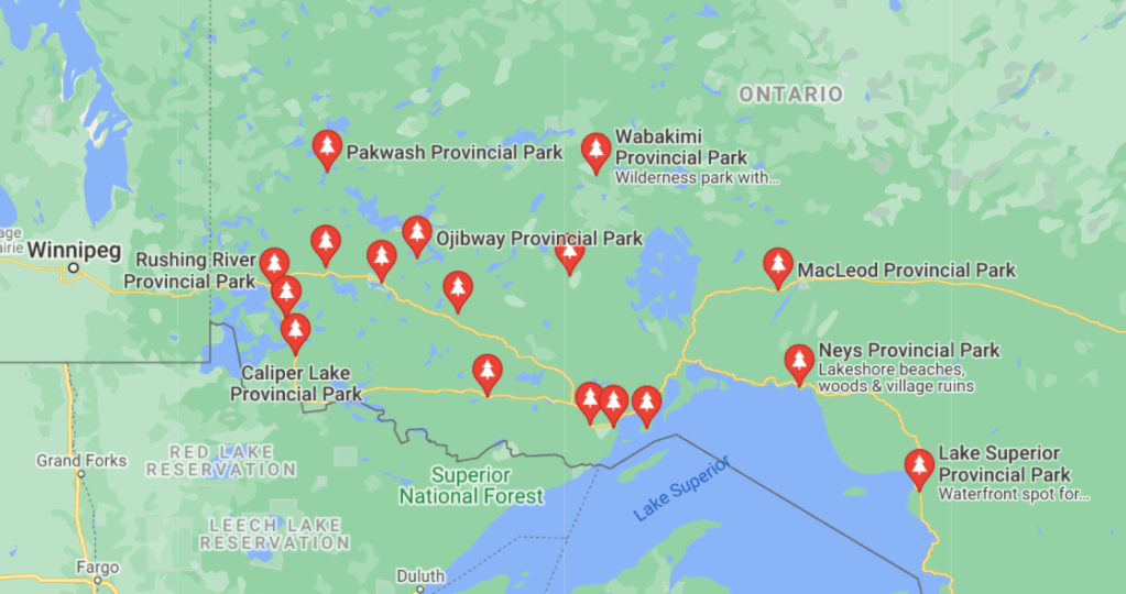I also have a lot of hope for the trees up here, and I’m hoping with my new normal, 9-5ish work schedule that I’ll actually have time to be able to drive and hike around and look at them. There are multiple provincial parks nearby; Ojibway I’ve already been to, but Aaron, Sandbar Lake, Blue Lake, Pakwash, Rushing River, Caliper Lake, and Sleeping Giant are all on my hit list. Wabakami is also close, but very difficult to, there aren’t really roads to get there. I’m also not 100% sure Pakwash is on my list either, Red Lake as a town isn’t really somewhere I aspire to visit and Pakwash is really close to Red Lake, probably close enough that I would have to stay there. And I don’t think that’s my vibe.
