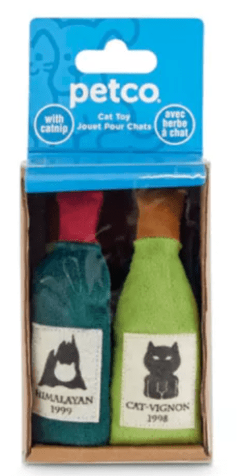 These silly little cat wine bottle catnip toys. Honestly, I just bought them on a whim, but he loves them. They’re the first “independent” toy (like one that doesn’t require me flicking something for hours) that he has ever played with. I have tried mice, little balls with bells, fish, he hasn’t been interested in any of them. So I don’t know if it’s the catnip or the shape of them, but he loves them.
