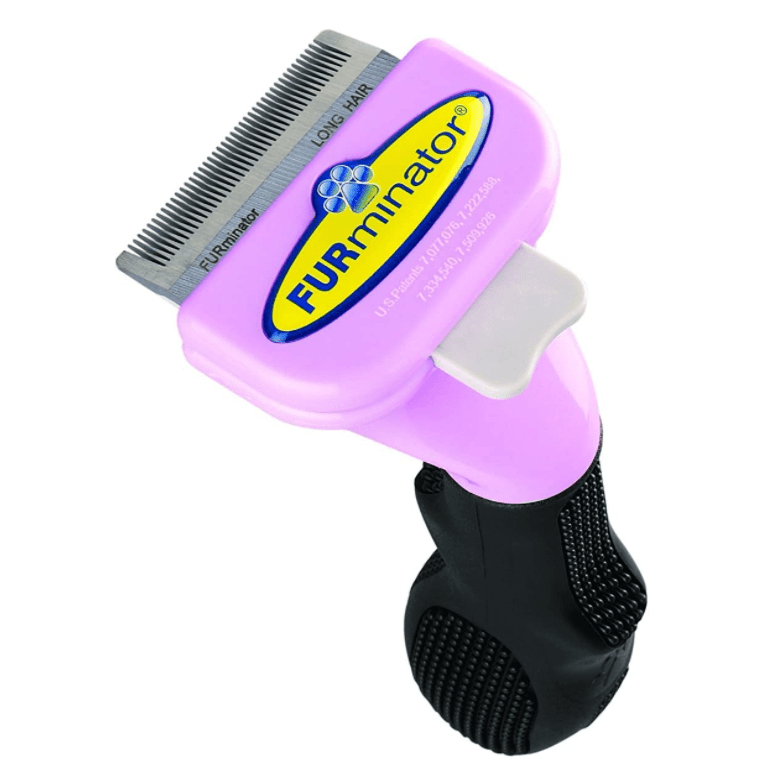 Furminator Brush. This is the best grooming tool to ever exist. He doesn’t particularly enjoy being brushed with it, but the amount of hair it gets out is unbelievable and it greatly reduces his hairballs (which honestly are our biggest problem). It is designed to cut the hairs of their undercoat. There are different versions for short and long-haired cats and yes it is absolutely the most expensive pet brush on the market, but in my opinion it is the only one worth buying.