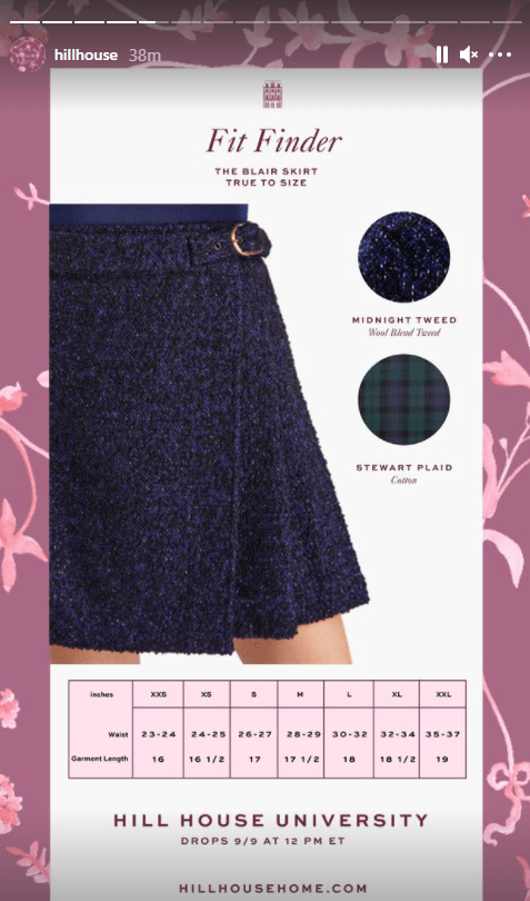 I really, really want the Stewart Plaid version of this skirt. Also the 19″ length actually looks pretty long when I measure it out on me. I am a bit nervous about actually getting this one, Hill House drops have a tendency to sell out and sell out fast, and when Nell and the Hill House account do Q&As there are a lot of questions about this skirt, so I’m worried that it will fly off the shelves.