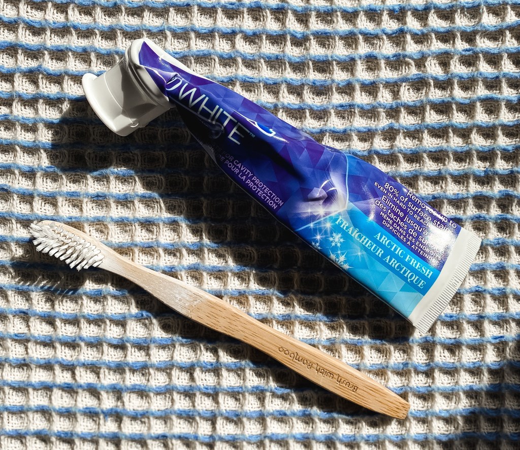 And tooth stuff, when I cleaned out my bathroom I swapped out my toothbrush for fresh one. I like to keep one of hand for scrubbing in tiny nooks and crannies, but I still had my previous one. Now, the bristles on most bamboo toothbrushes are not compostable. You can either take pliers and pull the bristles out or you can be like me and snap the brush head off and put the bamboo handle in the compost and the brush head in the garbage. It’s not perfect, but it’s a lot less waste than a full toothbrush (maybe my internal argument against an automatic toothbrush isn’t as sound as I thought it was?). And my toothpaste, I won’t be switching my toothpaste to a low-waste until I can find one with fluoride in it.