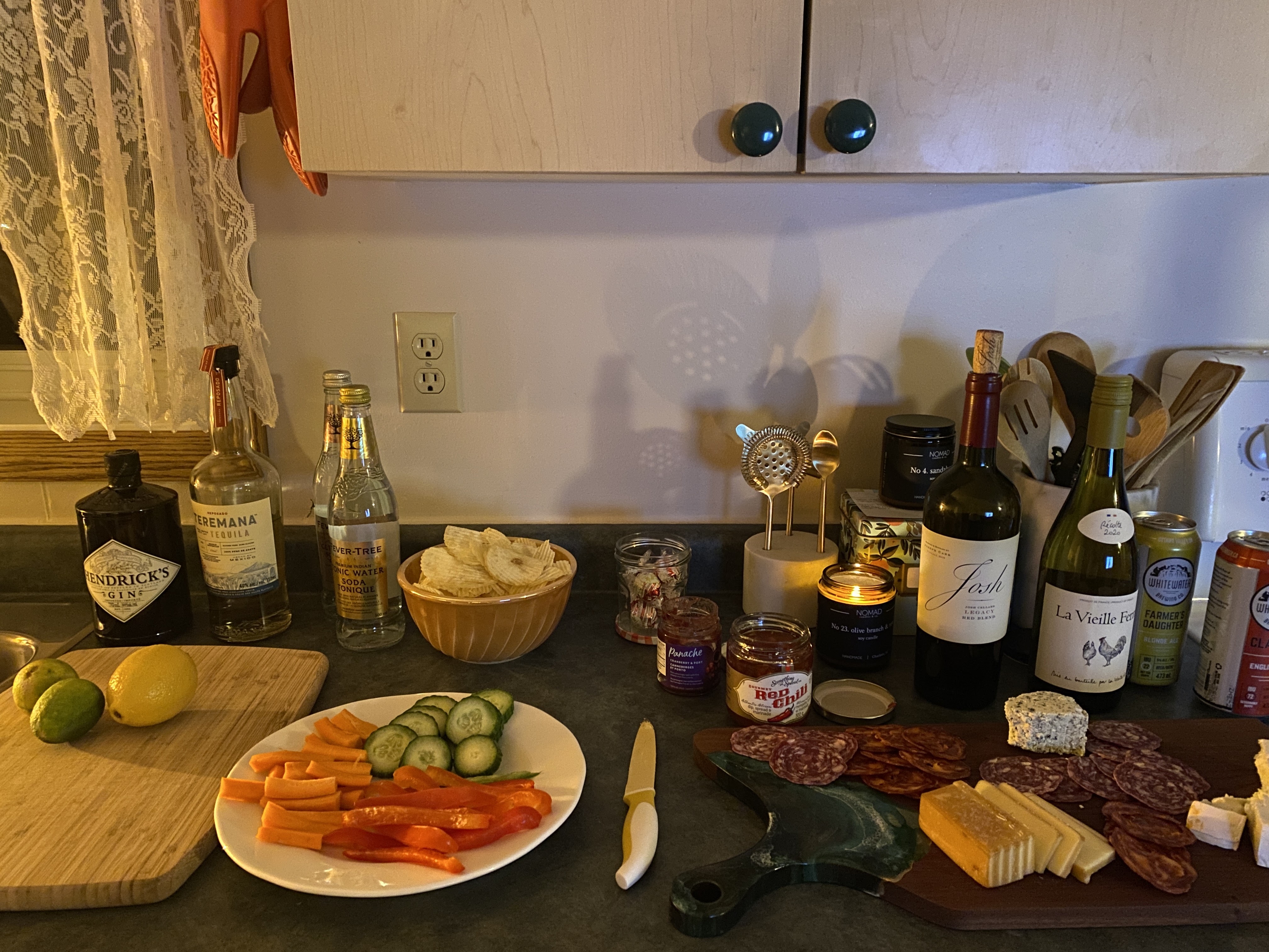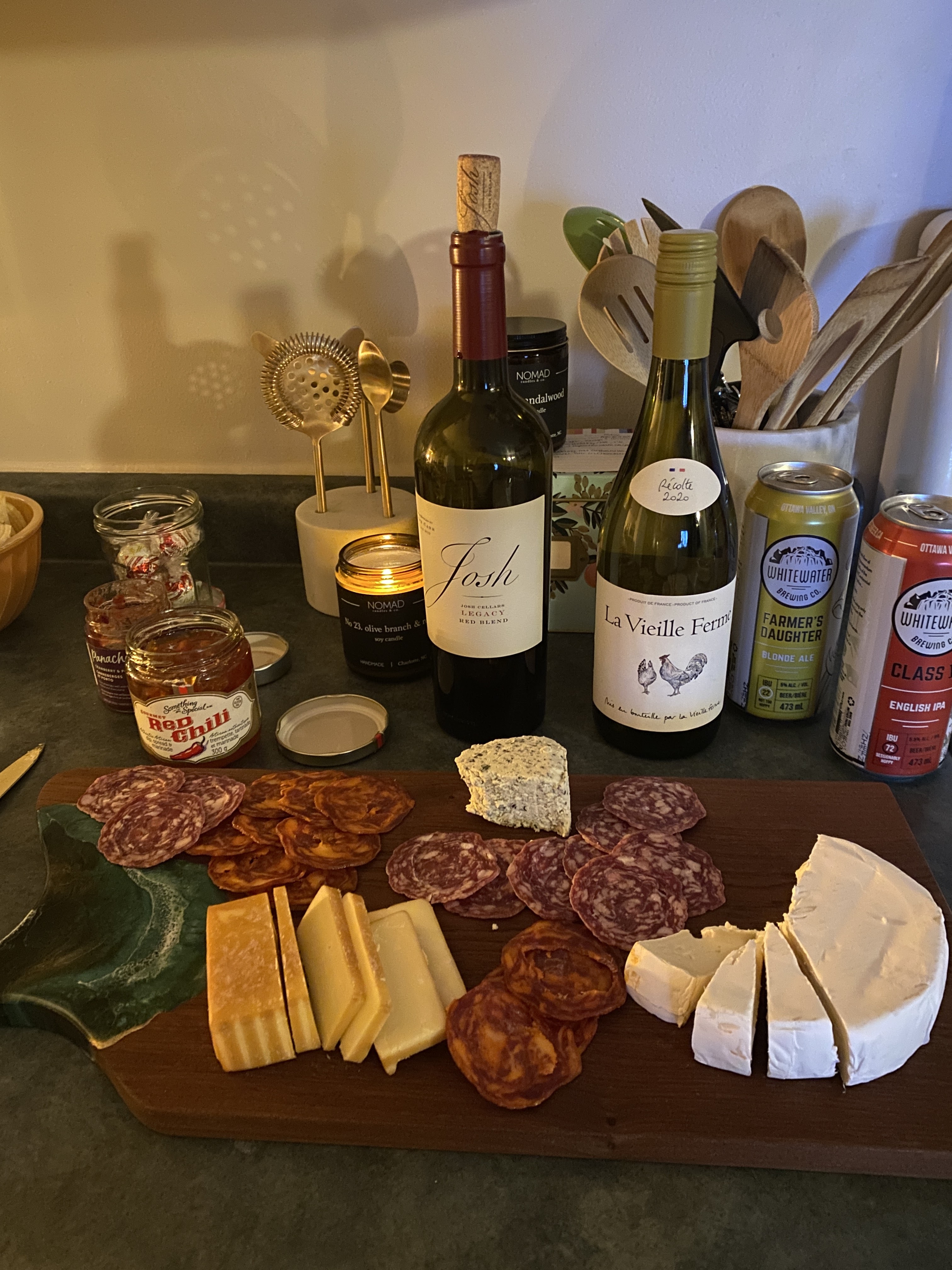 You also want to keep people’s food allergies in mind. I know that since it is now 2021 we should all know that by now, but one of my friends is gluten free, so I put the crackers for the charcuteries board in two separate side bowls and had a bunch of knives out to cut the cheese so that there wouldn’t be any cross-contamination.
