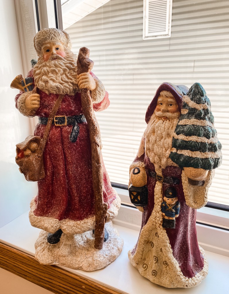 These are two of the Santas that I got from my Mom, that I don’t remember a Christmas without them, she’s had them as long as I can remember. I don’t have that many surfaces or bits of furniture to display things on, so I set these on the window sill. This is one of the things I really like about this apartment, it has nice deep window sills.