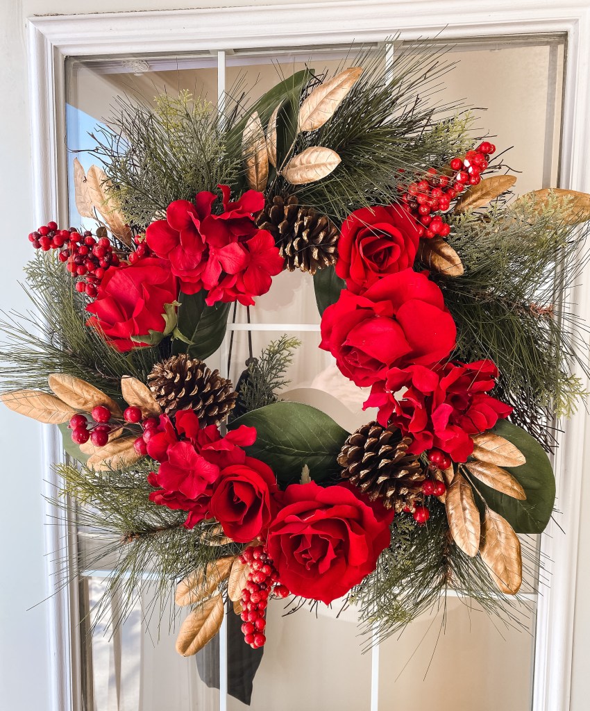 I got this wreath at Michael’s in 2016, I couldn’t afford it at the time, but I was having friends over for a Christmas cookie swap and didn’t own any Christmas decorations at the time. My parents lived in a bigger house at the time and still used more decorations, so I hadn’t “inherited” my hand-me-downs yet. And because I was hosting a Christmas thing I felt that I had to have decorations, so I bought this instead of groceries that week. But I’ve hung it every year since.