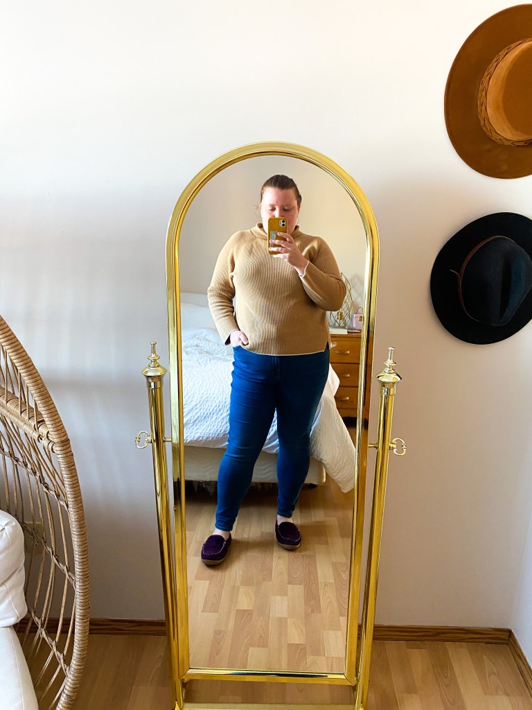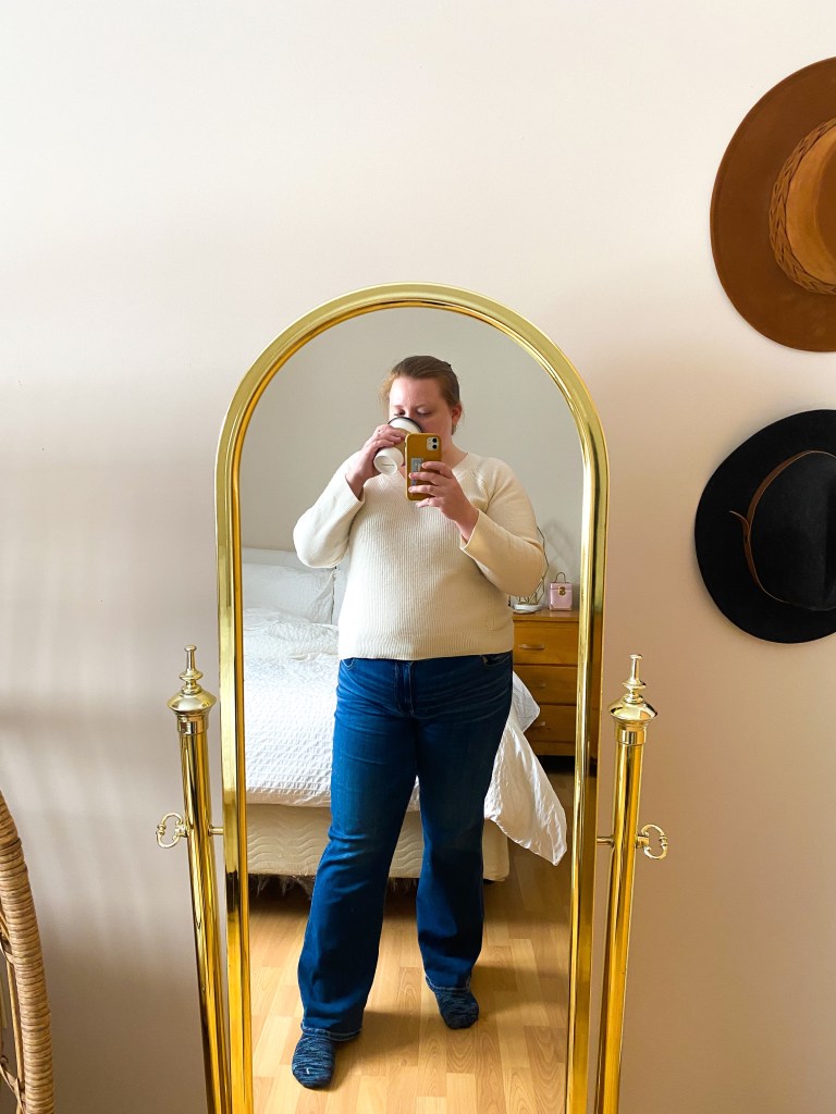 Tuesday // Talbots Sweater – old (and don’t recommend, it pills like that’s its job), American Eagle Jeans (the description on these says low rise, but before you panic in millenial, like I nearly did, the rise is 8″ not the 3″-5″ we grew up with), paint stain on socks – painting over the soot stains from the electric heaters in my old apartment