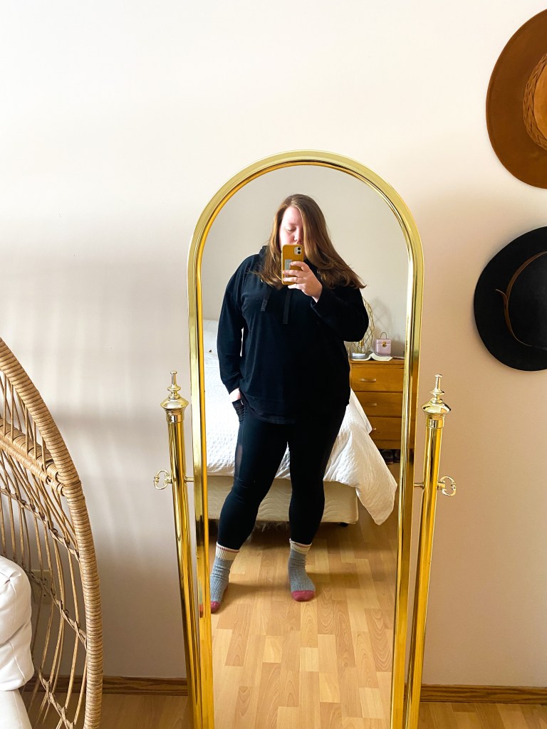 Saturday // I’m actually annoyed, because I did got out on Saturday and I didn’t take a picture of my outfit, it wasn’t much but it was better than this. Joe Fresh Hoodie – Old (similar), Aerie Leggings, Roots Socks.