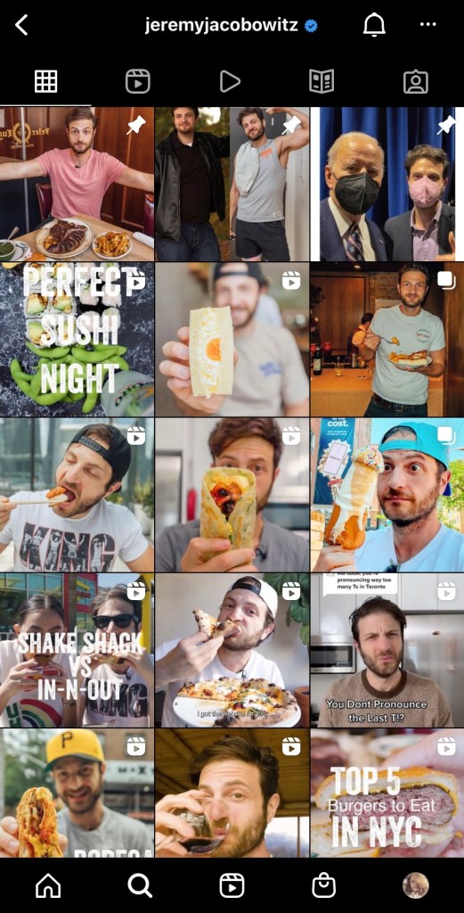 It occurred to me just now that I don’t often feature men in this section. I don’t really follow any male influencers, I’m not most of their target audiences. But Jeremy started his social media as Brunch Boys and he was a producer with Bobby Flay and on the Food Network and the quality of his content is just stellar. And I went to Alo in Toronto pre-pandemic on his recommendation and it was soooo good. One of the best meals I’ve ever had. His video content is really where he excels, he is a natural for the way social media is progressing to an all video format.