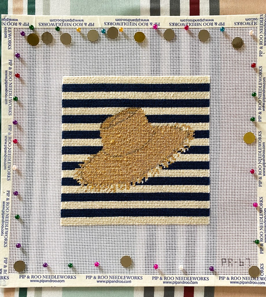Threads: Silk and Ivory in 010 Classic Navy, 060 Ginger, 064 Curry, and171 Whipped Cream, I would encourage you to shop your local shop for threads, but if like me you don’t have a local shop, these links will take you to KCNeedlepoint who ship nearly everywhere.