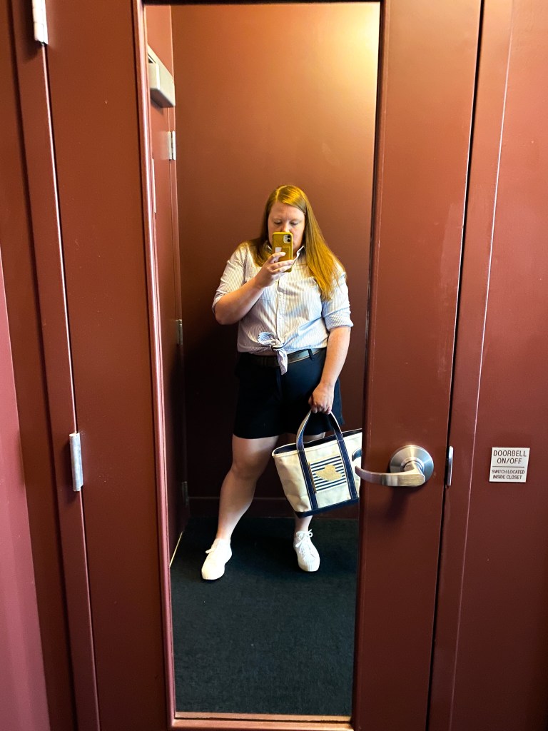 I was also very nervous that it wasn’t going to fit in between the two handles of the L.L. Bean Boat Tote that I had always envisioned it finished on. But it fits perfectly, and this has become my favorite summer bag for summer 2022.