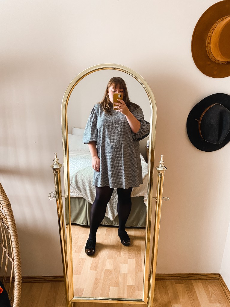 What I wore: Dress – old – Reitman’s, Tights – Snag, Shoes – old – Vionic.