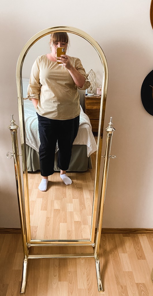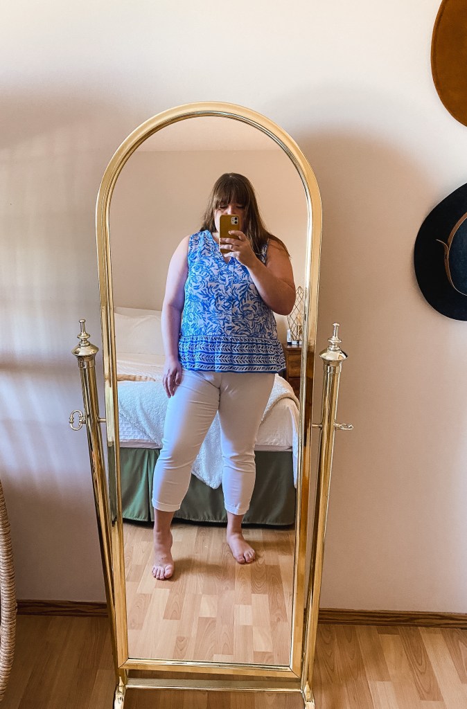 What I wore: Blouse – old – Lilly Pulitzer, Pants – old – Old Navy