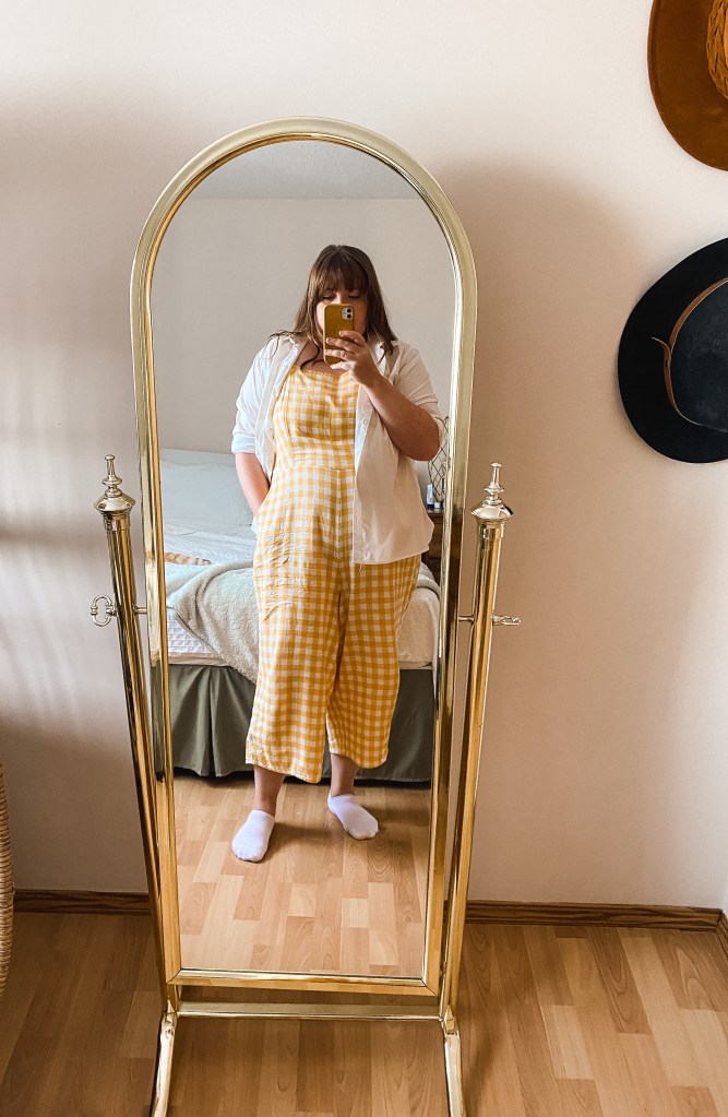 What I wore: Shirt – old – Old Navy, Jumpsuit – old – Old Navy