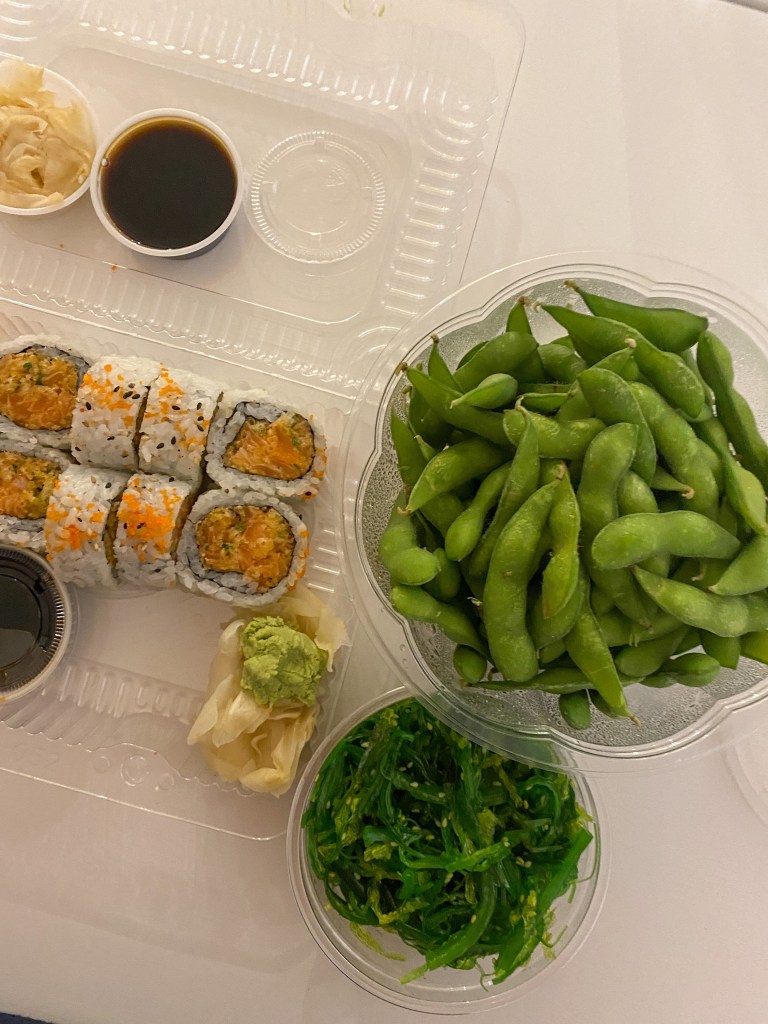 My friend was super late getting there so I ordered sushi. With the biggest order of edamame I have ever seen in my entire life. I could not finish it. Sushi is one of the biggest things I miss when I am up north.