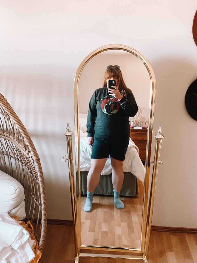 What I wore: Shirt – Work, Bike Shorts – Girlfriend Collective (black not available anymore)