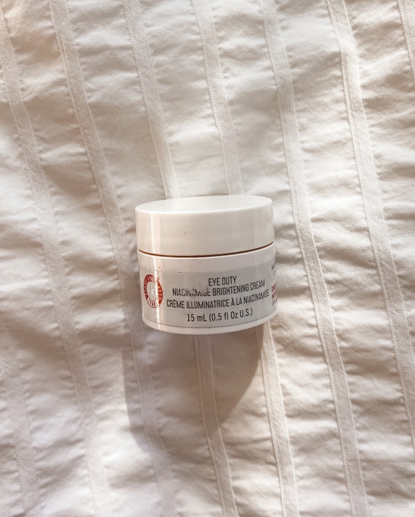This is my usual eye cream that I have been using since I started using eye cream, the First Aid Beauty Niacinamide Brightening Cream, I really like this, but I’ve been thinking about switching to more of an anti-aging eye cream over a brightening eye cream this time.