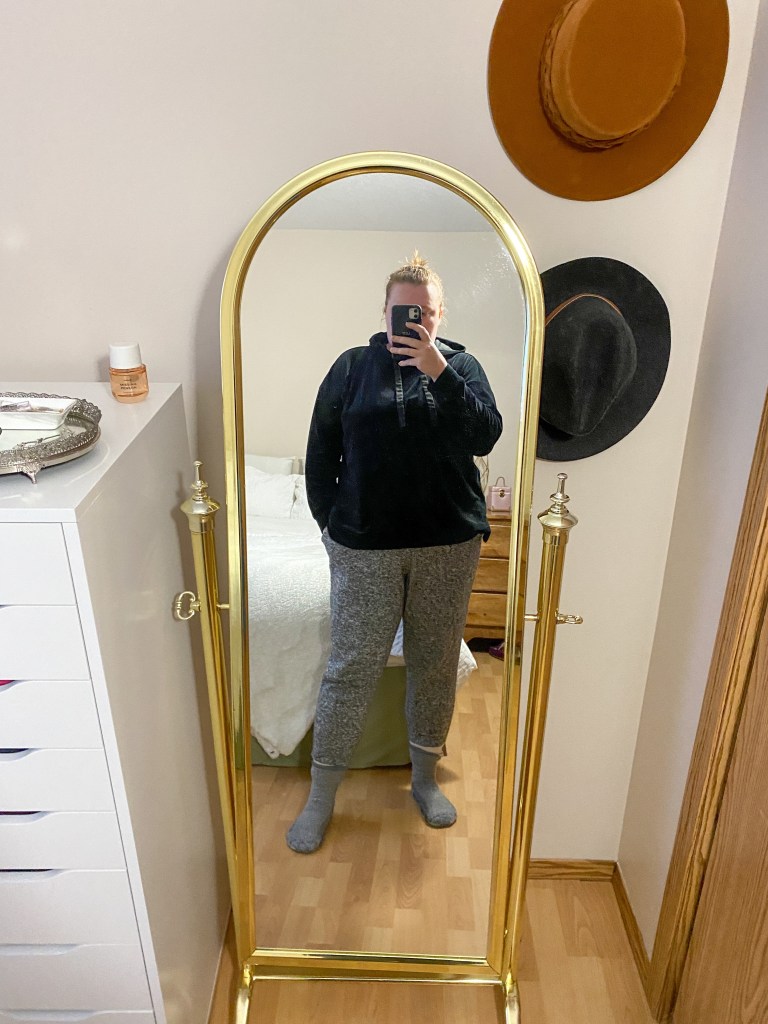 What I wore: Hoodie – old – Joe Fresh, Sweatpants – old – Thrifted