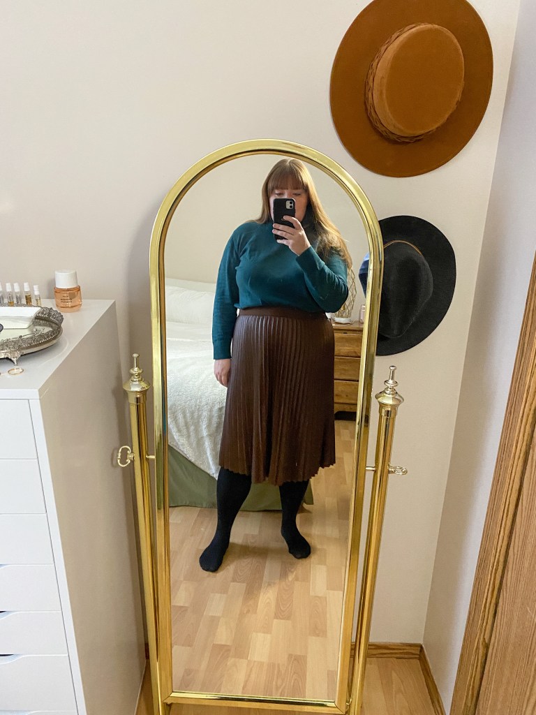 What I wore: Turtleneck – Talbots, Skirt – Hill House Home (similar here), Tights – Snag