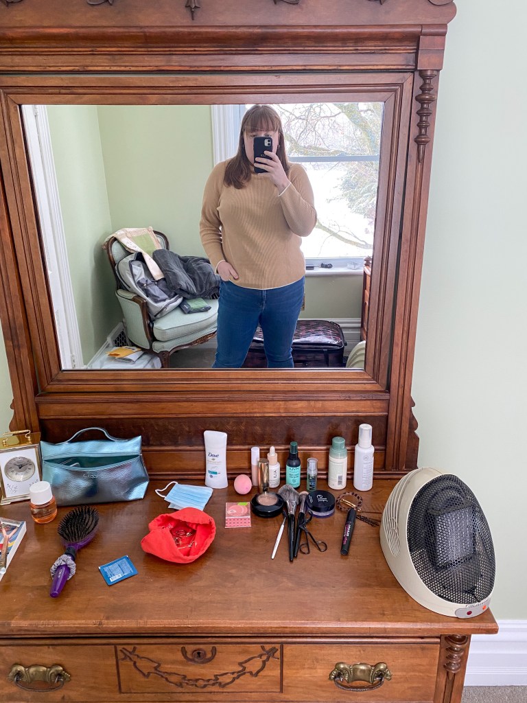 Tuesday-Thursday (excuse the mirror change, I forgot to take a picture but knew I had one thanks to being a career outfit repeater). And yes, I did where this outfit for four days straight. I think it got washed once in there.