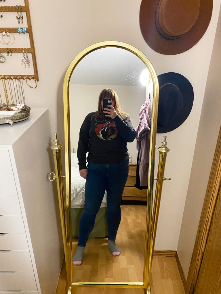 What I wore: Sweatshirt – Prairie Harm Reduction, Jeans – Madewell