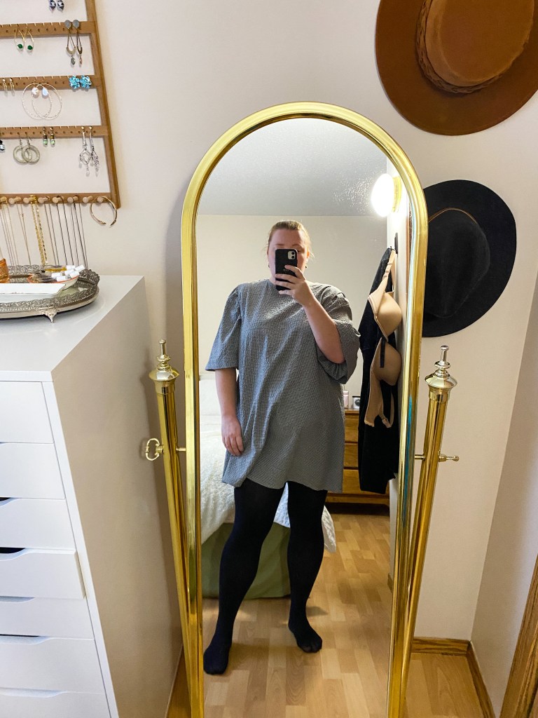 What I wore: Dress – old – Reitman’s, Tights – Snag