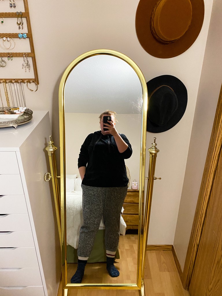 What I wore: Hoodie – old – Joe Fresh, Tank – old – Joe Fresh, Sweats – old – Thrifted