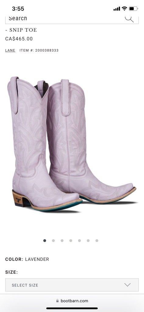 I was considering ordering black cowboy boots for an outfit, but I talked myself out of it because a) they weren’t going to come in time for when I wanted to wear the outfit, and b) I don’t really need them. But in my search I found these lavender cowboy boots and I cannot stop thinking about them. I want them so desperately. But I don’t need them, there is never a situation in which I am going to need lavender cowboy boots, but OMG they are so pretty.