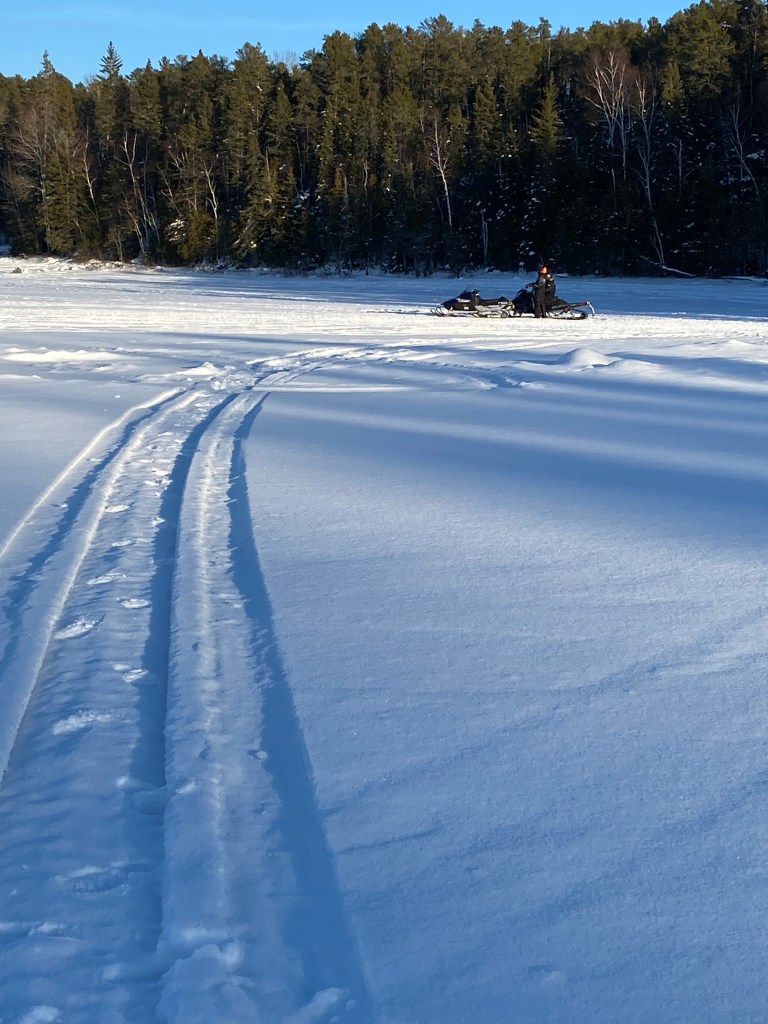 In other fear-conquering news, I finally ventured out to walk on the frozen lakes. I was always too scared last winter, but I kept telling myself, if they can snowmobile across it safely then I can definitely walk on it.
