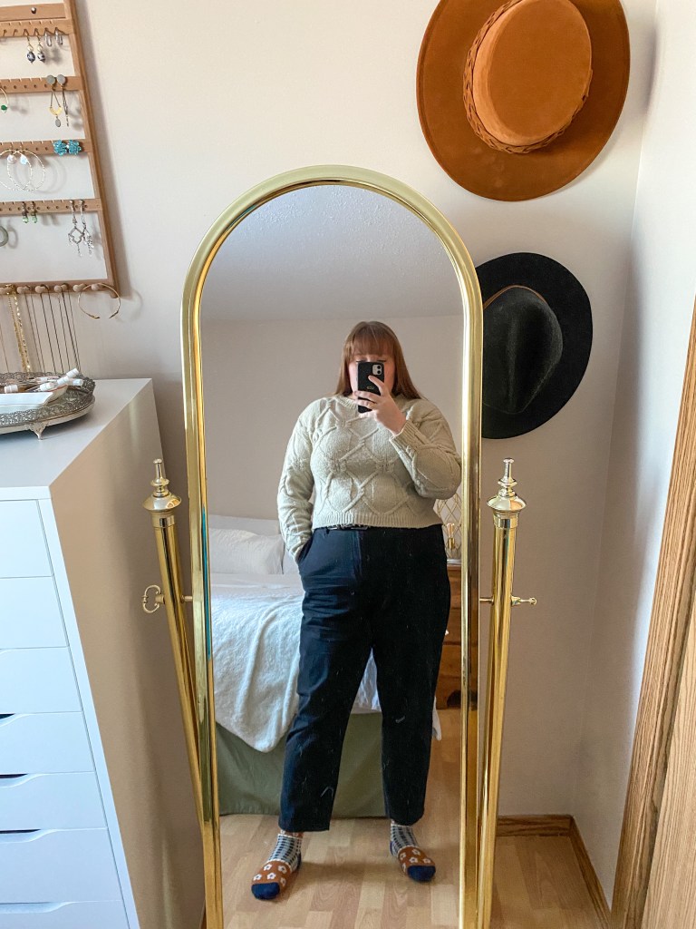 What I wore: Sweater – old – boutique, Pants – old – Joe Fresh. I find it very interesting that Wednesday and Thursday are basically the same outfit, just different silhouettes.