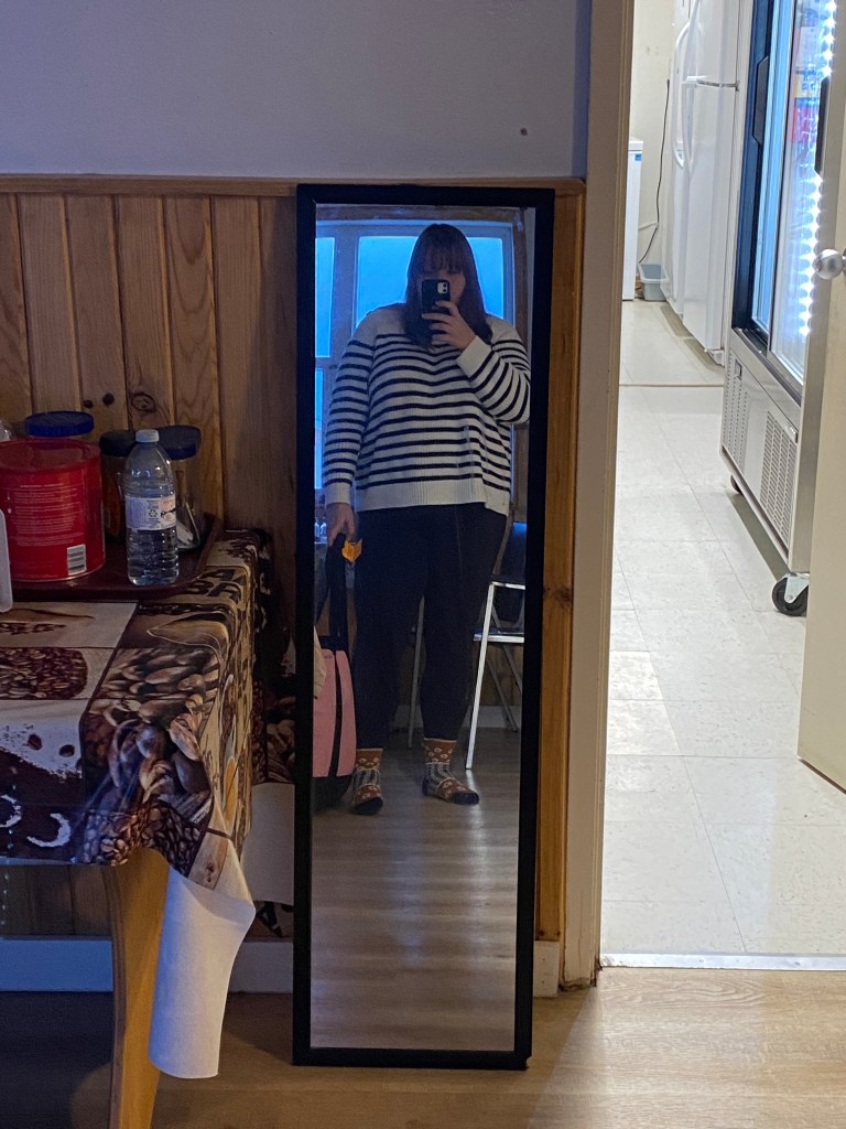 What I wore: Sweater – Old – Joe Fresh, Jeans (not pictured because they ripped partway through the day) – Madewell (RIP, they lasted a lot longer than most of my jeans, so I’m impressed), Leggings – Lululemon