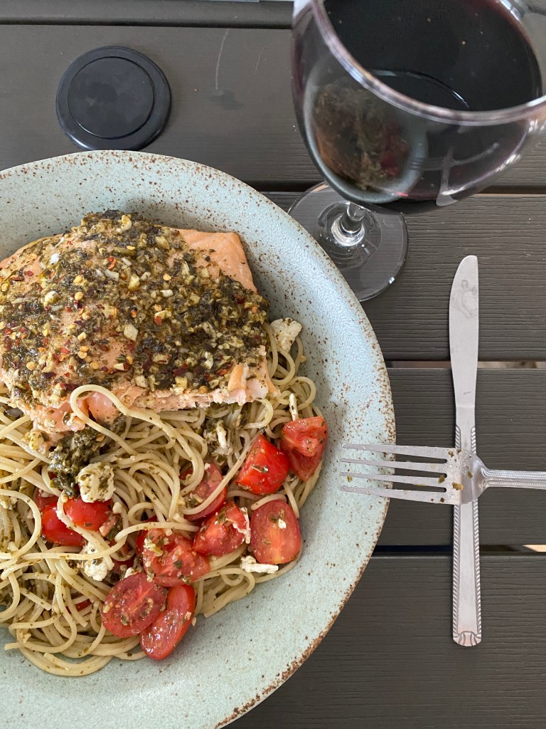 - Pesto Pasta with Salmon. 2. Sausage Soda. 3. Croissants. 4. Roasted blackberry ricotta toast on sourdough. 5. Asparagus and feta quiche with arugula salad. 6. More croissants.