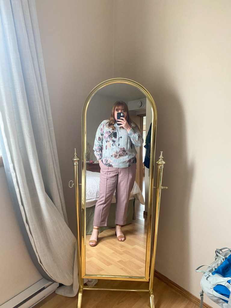 What I wore: Blouse – Old – Boutique (The Shoe Lounge in Renfrew, Ontario), Pants – Old – Target (similar, and potentially comfier), Shoes – Old – Aldo (these are not comfortable, so if you have any recommendations for comfier nude office heels please send them my way)