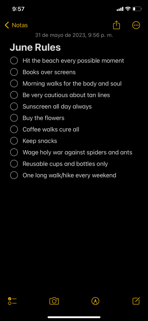 There’s this really cute TikToker and author named Eli @EliRallo and she makes these videos where she writes down a list of rules for a certain scenario. It could be rules for a specific month, a specific situation, a specific period of time. However, her rules often don’t work for me because she’s 24, wealthy, and lives in New York City. I am almost 30, not wealthy, and live in a small town, hours from a small city, let alone a major one. There are not even restaurants in this town, so a lot of her rules just are not options for me. So, here are rules for small town, almost 30 somethings.