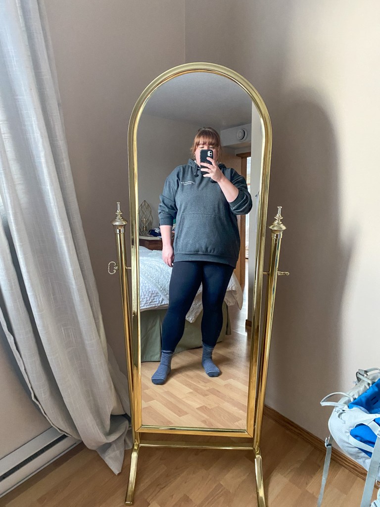 What I wore: Hoodie – Grad School Merch, Leggings – Lululemon