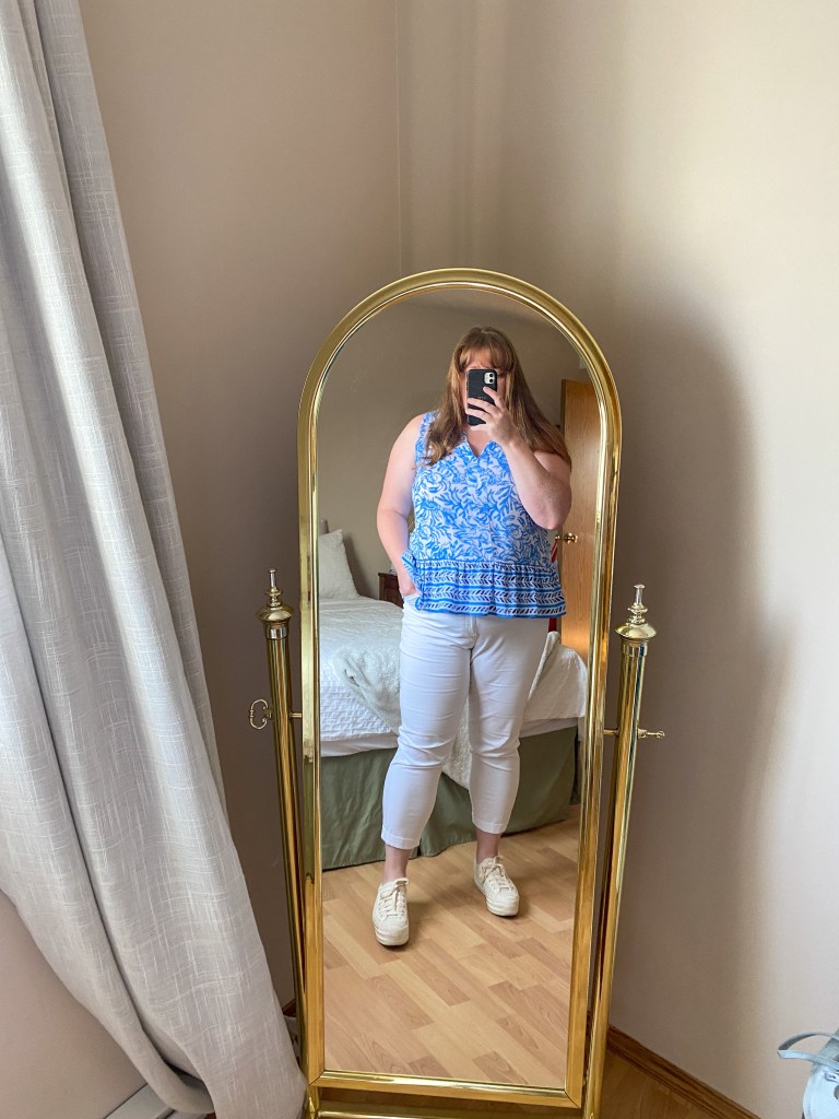 What I wore: Blouse – Old – Lilly Pulitzer, Pants – Old – Old Navy, Shoes – Old – Keds x Kate Spade