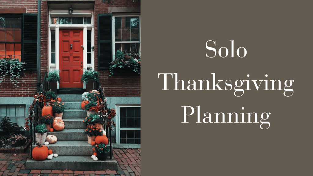 Just because you are alone, does not mean that you should not make it look festive. Get pumpkins, put out any fall decorations you have. Light candles on the table, get nice napkins, use your nice plates if you have them. Make it nice, even when it’s just you.