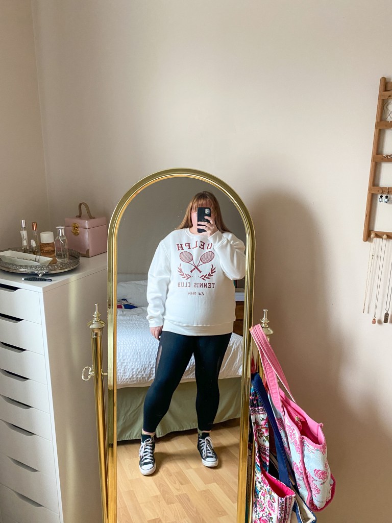 What I wore: Sweatshirt – Uni, Leggings – Old – Aerie, Shoes – Converse