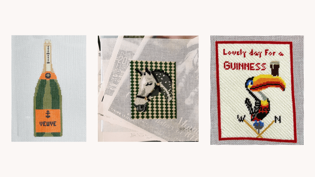 Pip and Roo is classic needlepoint without being like your Grandma’s needlepoint. They make gorgeous, preppy designs. I don’t find them the easiest to stitch, I’m not sure they are stitch painted, but they do look really nice when they are stitched.