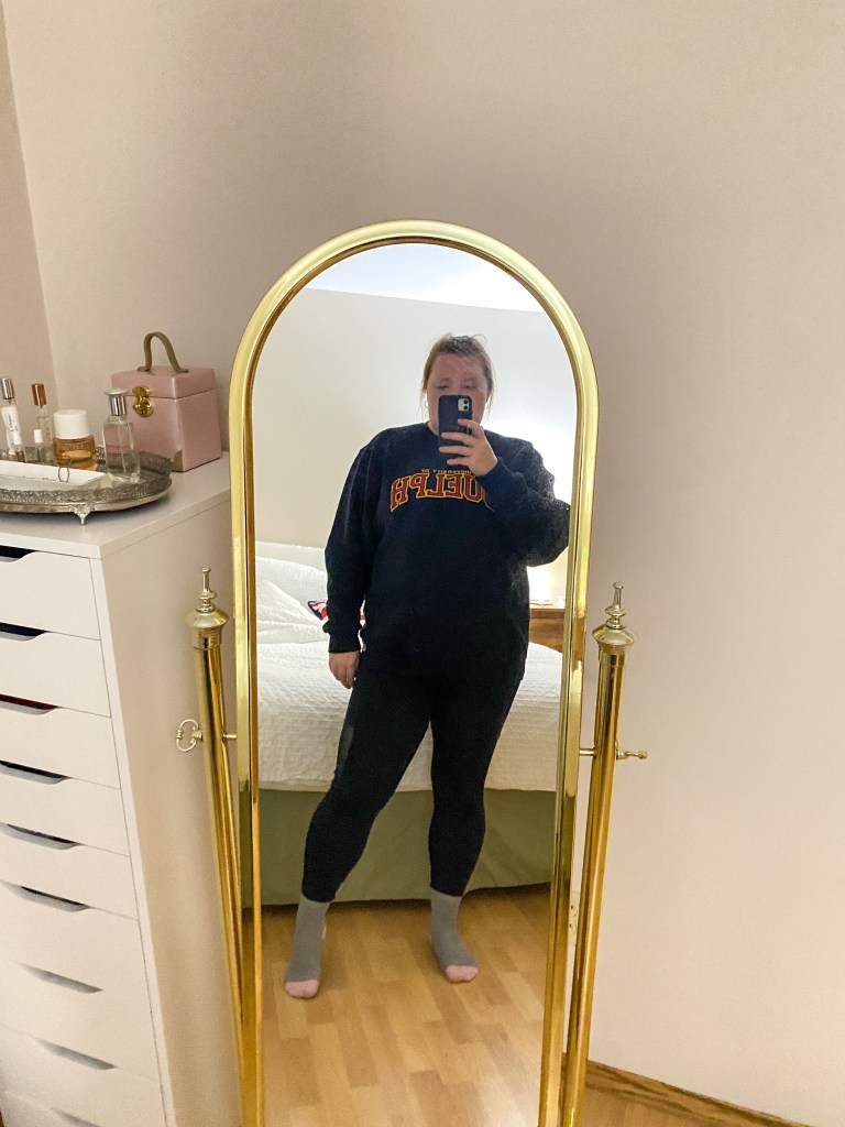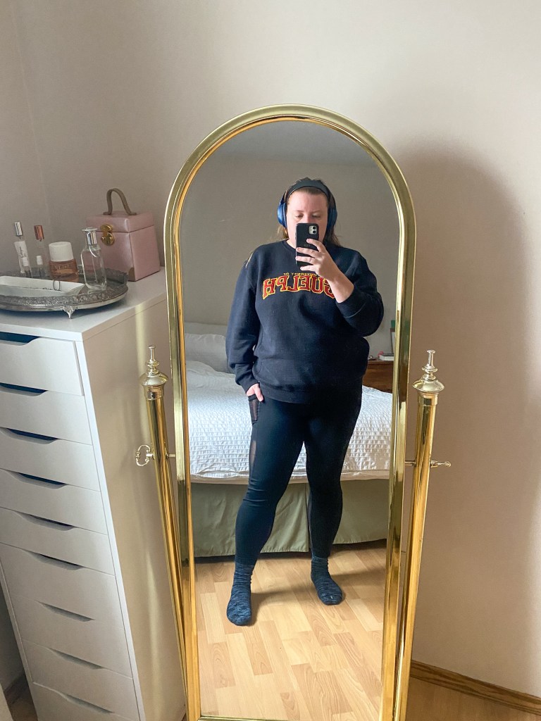 What I wore: Pullover – University of Guelph Merch, Leggings – Old – Aerie